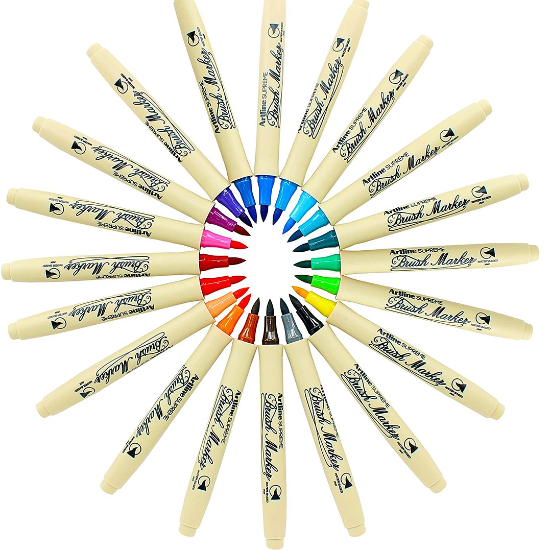 Artline Supreme Brush Marker, punta estilo pincel de color "Naranjo". Marcadores japoneses de muy alta calidad y resistencia, tiene una punta de fibra muy resistente de 1 mm de ancho. Su tinta a base de agua fluye suavemente para producir desde sombreado claro hasta trazos y líneas audaces.