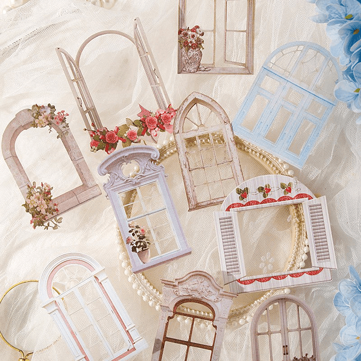 Descubre los Stickers Ventana Vintage, una opción encantadora para agregar un toque retro y nostálgico a tus proyectos creativos. Estos recortes están inspirados en elegantes ventanas de estilo vintage, ideales para embellecer diarios, cartas, álbumes y cualquier tipo de decoración artística.